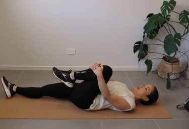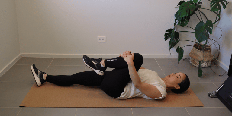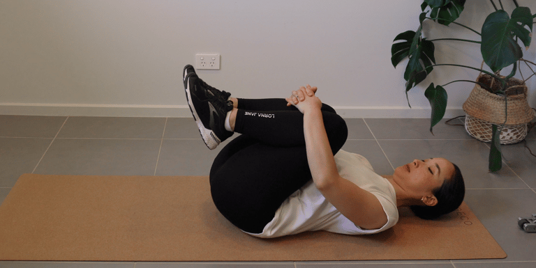 Hugging your knee to your chest stretches your lumbar spine, bum and hip muscles which helps to reduce back pain and also restore normal movement, especially if your back is feeling stiff and tight.