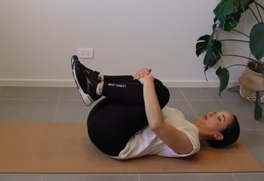 Bring one leg up and then the other leg up and hug it towards your chest (this is IMPORTANT - because bringing both knees up at the same time can hurt your spine more)