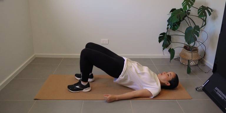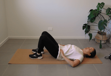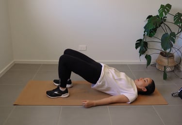Bridges - also known as bum-lifts strengthen the biggest muscles in your body, your thighs and your bum muscles! It's important to have strong bum and back muscles to allow you to bend, lift, stand and walk without placing unnecessary stress and strain on your little back muscles or your spine, disc and nerves.