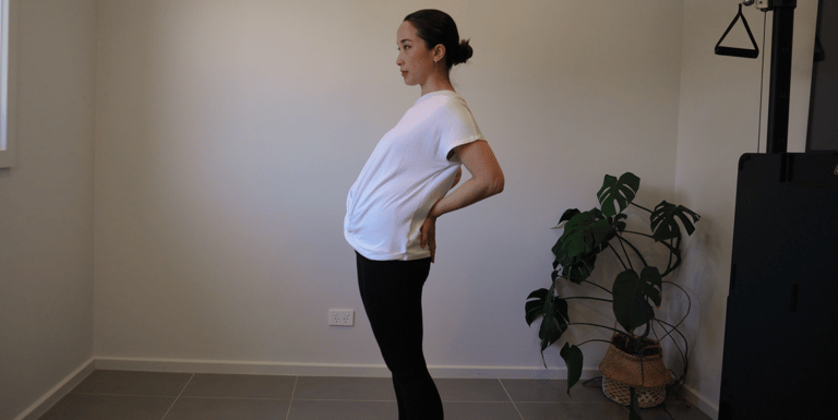 Let your hips hang forward (imagine a pregnant woman with a big belly)