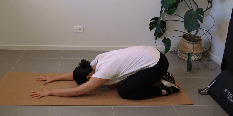 Child's pose is a stretch that decompresses your spine and takes the weight off of it.