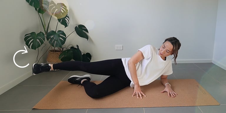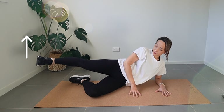 Important notes: this exercise is typically performed incorrectly because we have a tendency to compensate with our quadriceps or use momentum to flick up the top leg. If you're not feeling it around your top buttock or hip muscle, roll your top hip slightly forward.